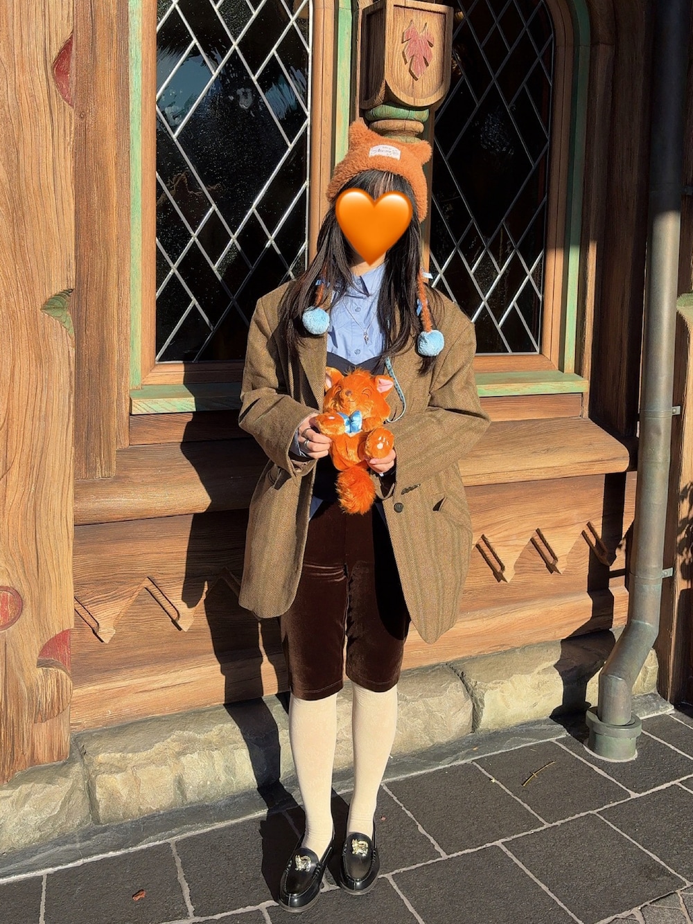 KBFのジャケット古着っぽくてお気に入り! ローファーは猫ちゃん😽
