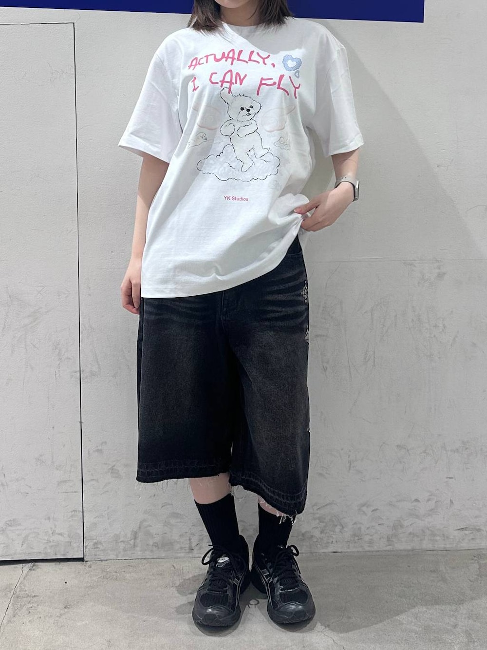 wtaaem95のデニムパンツ「★K-POPアイドル着用【UNISEX】Wai Kei/STUDバミューダパンツ」を使ったコーディネート