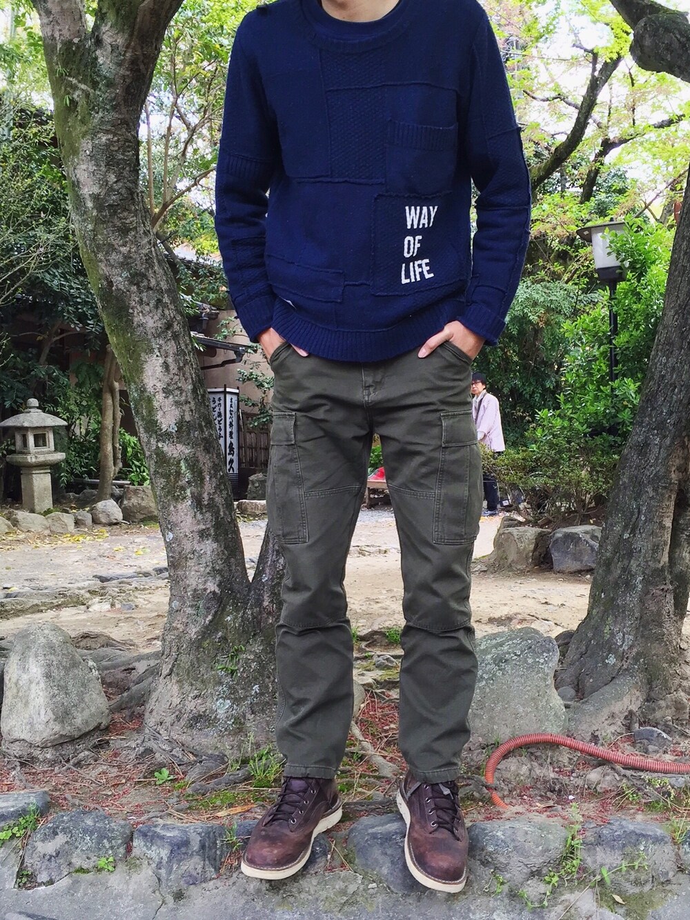 ブルー系のその他トップスを着用したメンズの春コーディネートの1枚目の写真