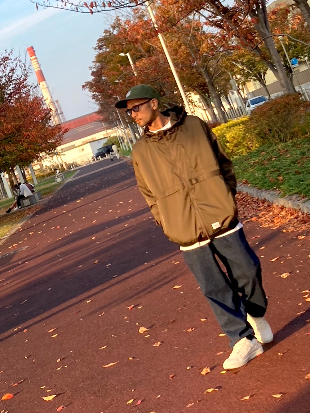 😃オリーブドラブ×インディゴ× マットな深緑のキャップ。 スニーカーはAJ2です😁
