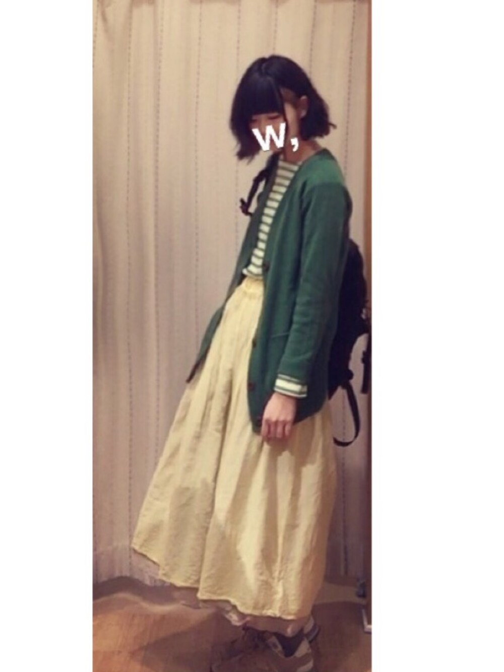 W,のスカート「無地×無地リバーシブルギャザースカート」を使ったコーディネート