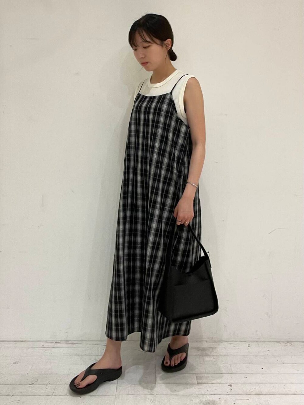 ◎チェックキャミワンピース 広がりすぎず、体のラインを拾いすぎない程よいサイズ感のキャミワンピースです✨ バックにタックが入っているので、後ろからのシルエットがすっきり見えします!ポケットも付いているので助かります♪ シンプルになりやすい夏コーデにチェック柄を取り入れてみませんか?