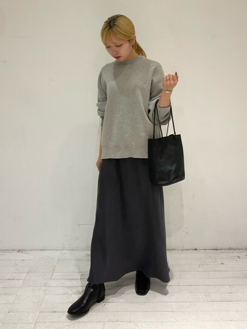 ◯コットンカシミヤプルオーバー 程よく体にフィットし、コットンにカシミヤをブレンド、肌触りの良い質感のニットです✨ 柔らかい素材なので、レイヤードするのにもピッタリなニットです! お袖はしっかりリブで、手首にフィットしてくれます。 ◯ハイカウントキュプラスカート スタイルアップをさせてくれる優れもののスカートです! 伸縮性のある記事なので、着心地はもちろん、歩きやすさもあります✨ スカートのさりげないきらめきで、コーデが上品な雰囲気なります。