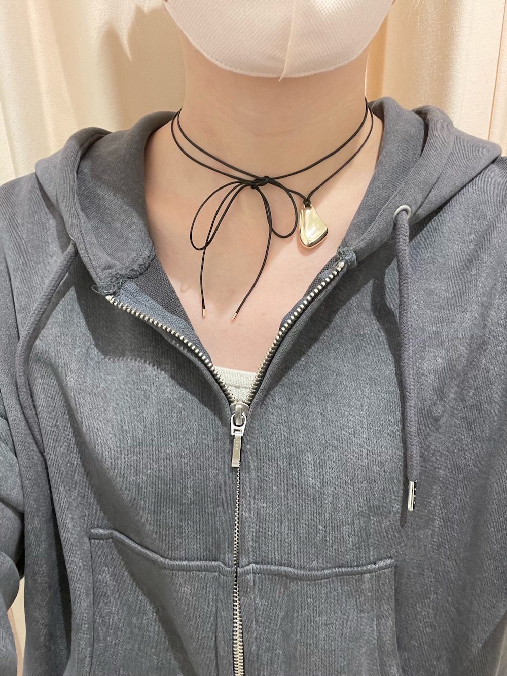 wtomy(DOORS 京都藤井大丸)のネックレス「ニュアンスメタルトップコードネックレス」を使ったコーディネート