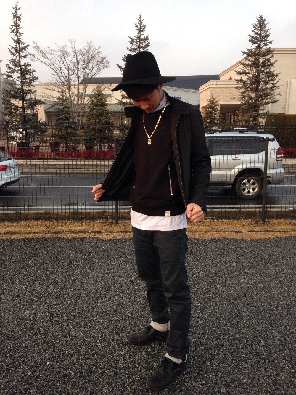 黒コーデで、金のネックレスをつけました😎