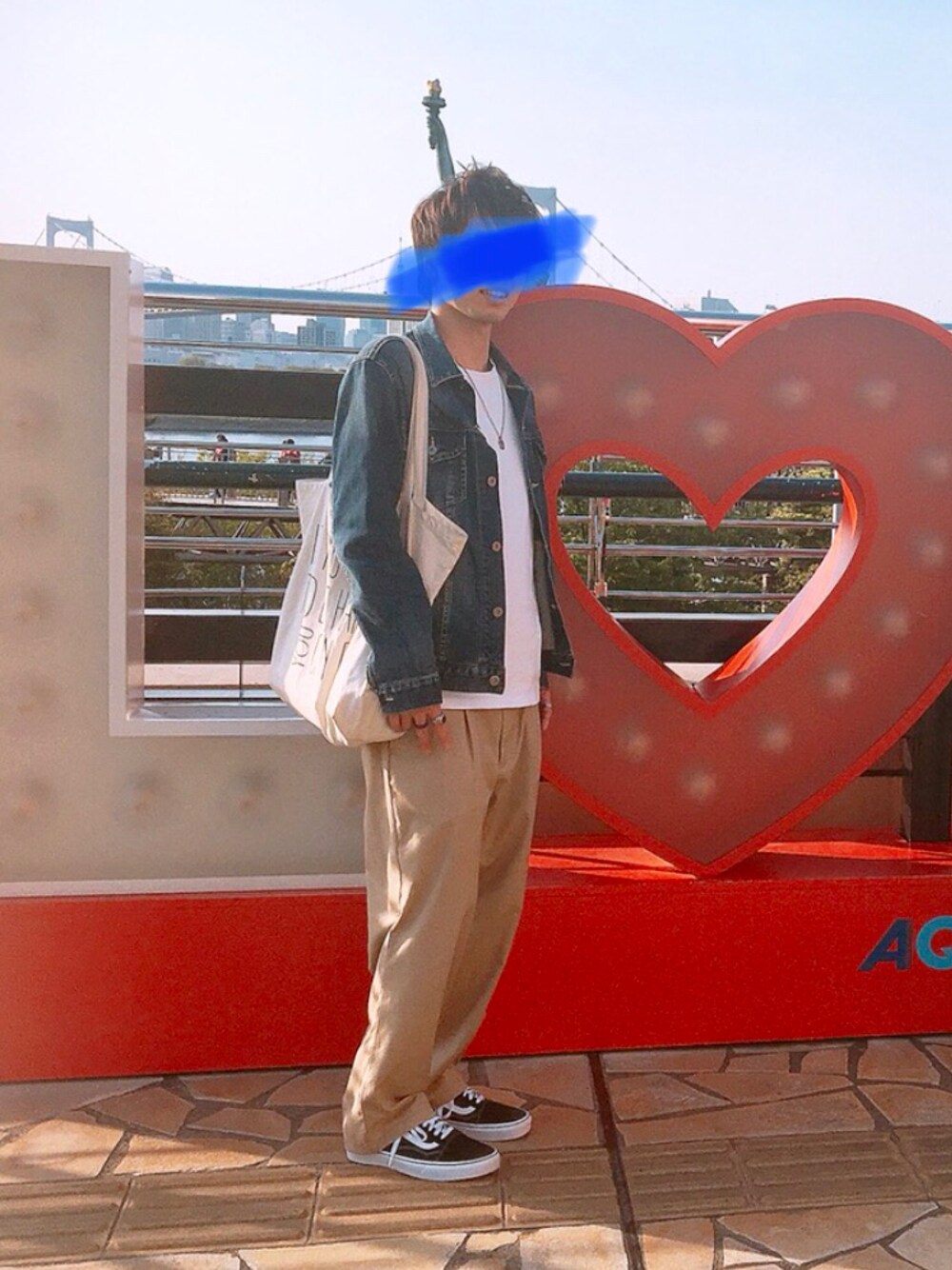 お台場でのデートコーデです。 彼女の誕生日祝いでした! お店のドレスコードはなかったので カジュアルスタイルでいきました! デニムジャケットにチノワイドとシンプルな感じです。 春はデニムが最強説。 今後デニムのロングシャツがクローゼットに入荷予定なので、載せます😊