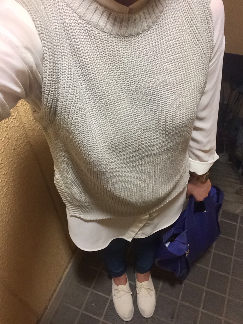 ベスト : Discoat シャツ : LOWRYS FARM ボトムス : LOWRYS FARM シューズ : PAR ICI バッグ : GAP