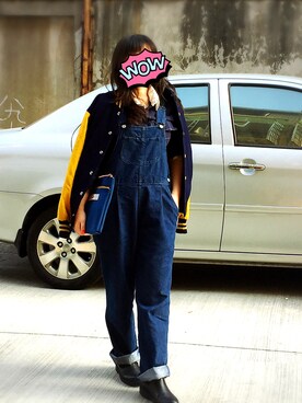 「earth music&ecology(アースミュージックアンドエコロジー)のアイテム(オールインワン・サロペット、ブルー系)」を使った、pointさん(レディース・152cm)の冬コーディネート