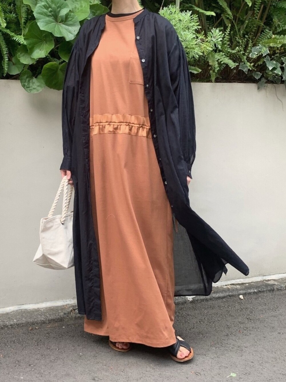 お気に入りのTワンピとシャツワンピの着まわし ゆるっとしたシルエットの組み合わせでも、キレイめの素材感同士で、自然とだらしなく見えない👓