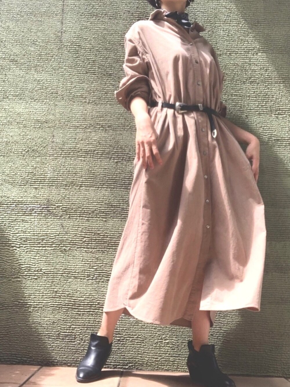 wuqaのシャツワンピース「シャツコールロングシャツワンピース」を使ったコーディネート