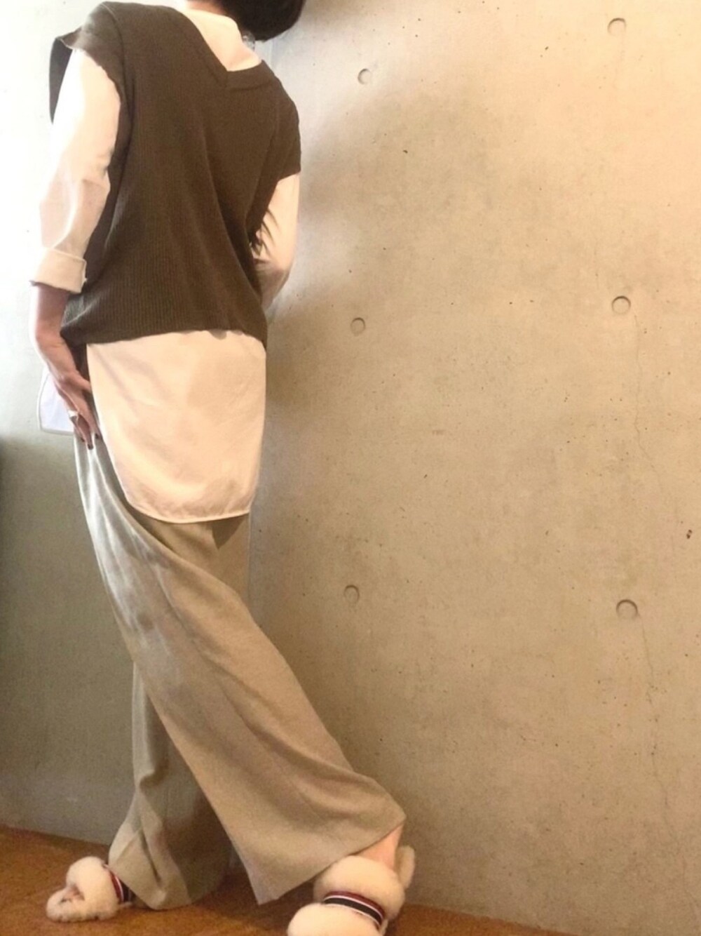 wuqaのベスト「コットンリネンリブ 2WAYニットベスト/プルオーバー」を使ったコーディネート