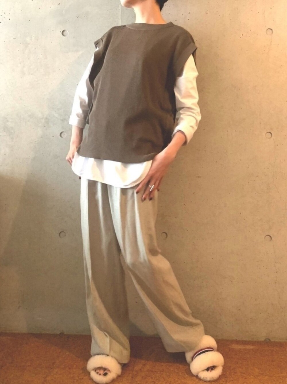 wuqaのベスト「コットンリネンリブ 2WAYニットベスト/プルオーバー」を使ったコーディネート