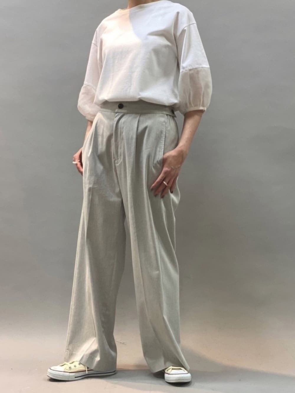 ふんわり袖のシアー素材の切り替えがかわいい白T🕊 さりげなくトレンドを取り入れられるので、白T好きにもおすすめです✨