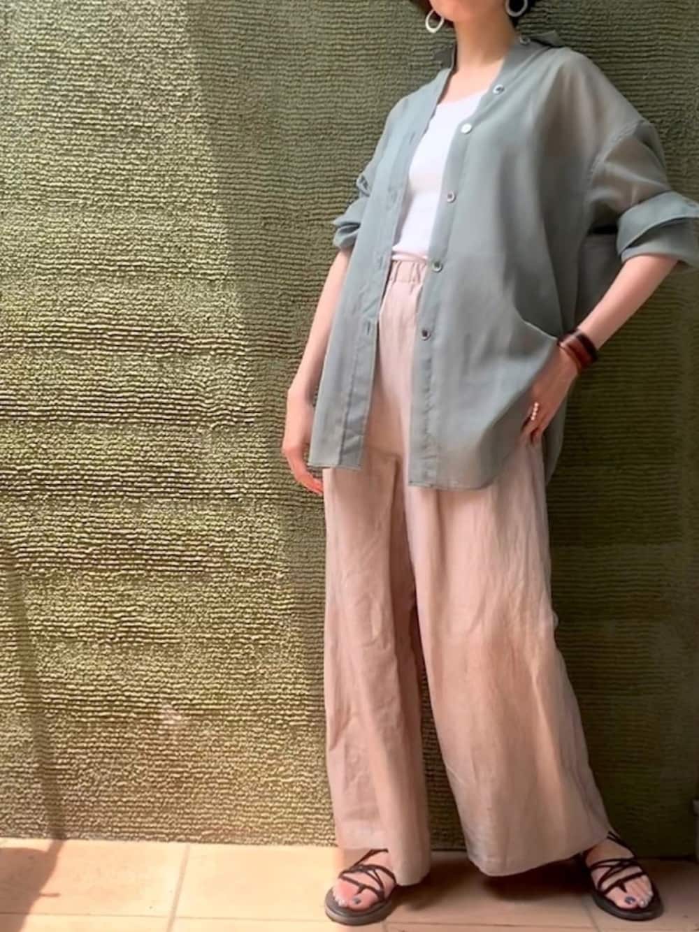 wuqaのその他パンツ「リネンカールマイヤー ギャザーワイドパンツ」を使ったコーディネート