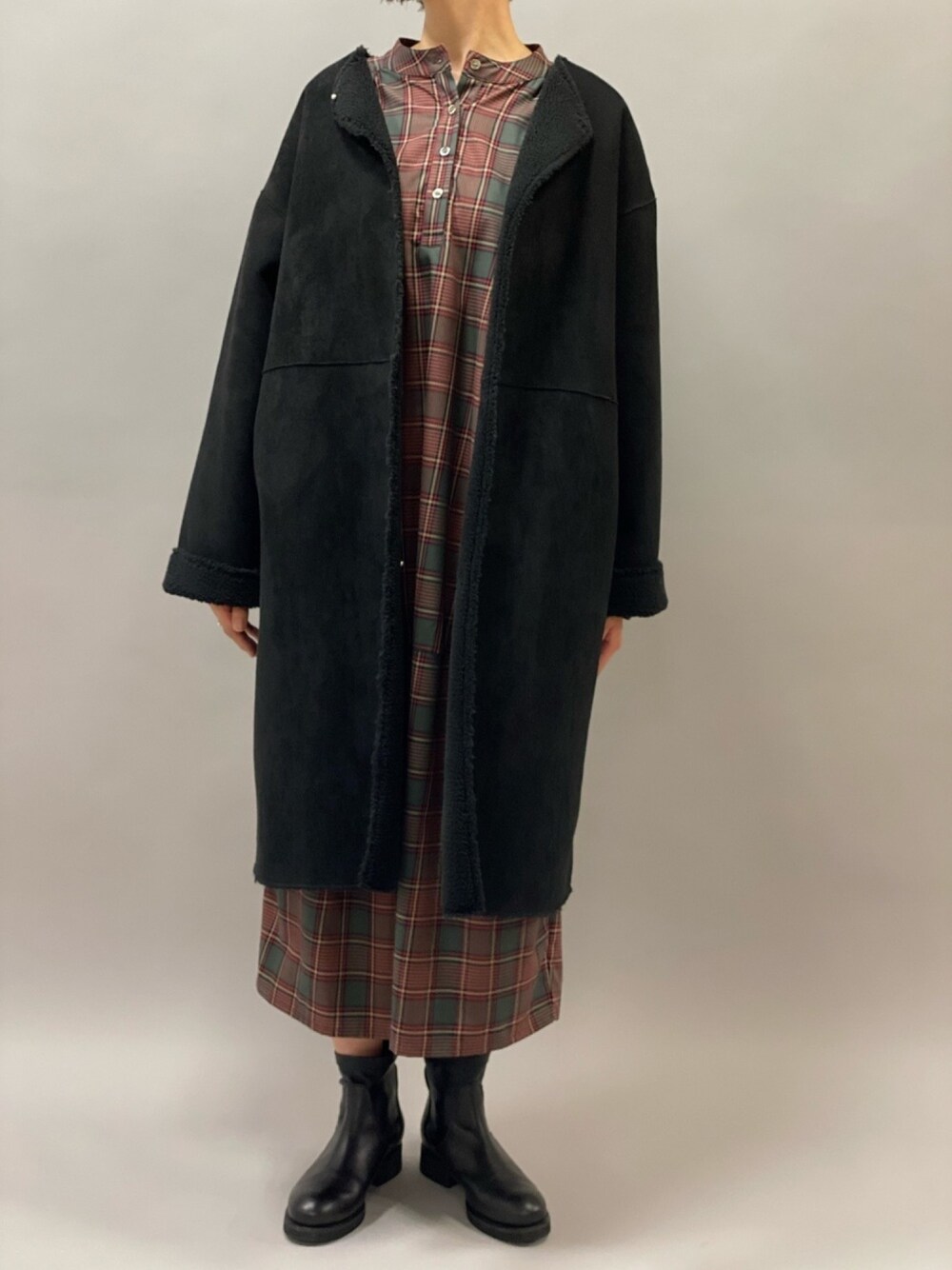 wuqa(Munich)のムートンコート「エコムートンリバーシブルノーカラーコート」を使ったコーディネート