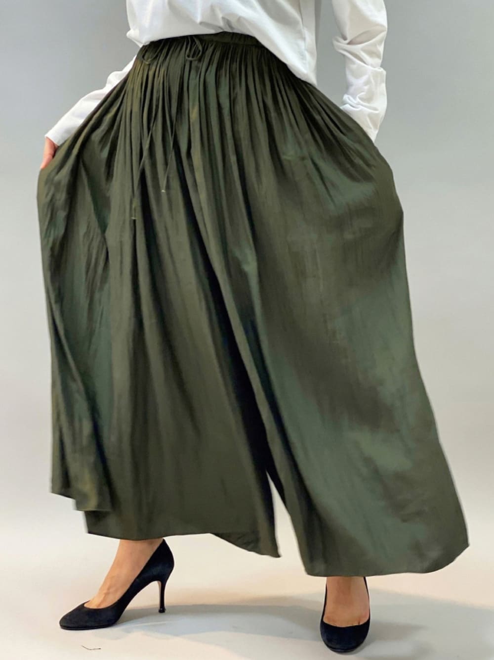大人気のスカート見えパンツ🙆‍♀️ 軽くて涼しくて、シワも気になりにくくて、いいことづくめです! シーズンレスで使えて、程よく秋っぽさもあるこんなカラーはいかがでしょうか?