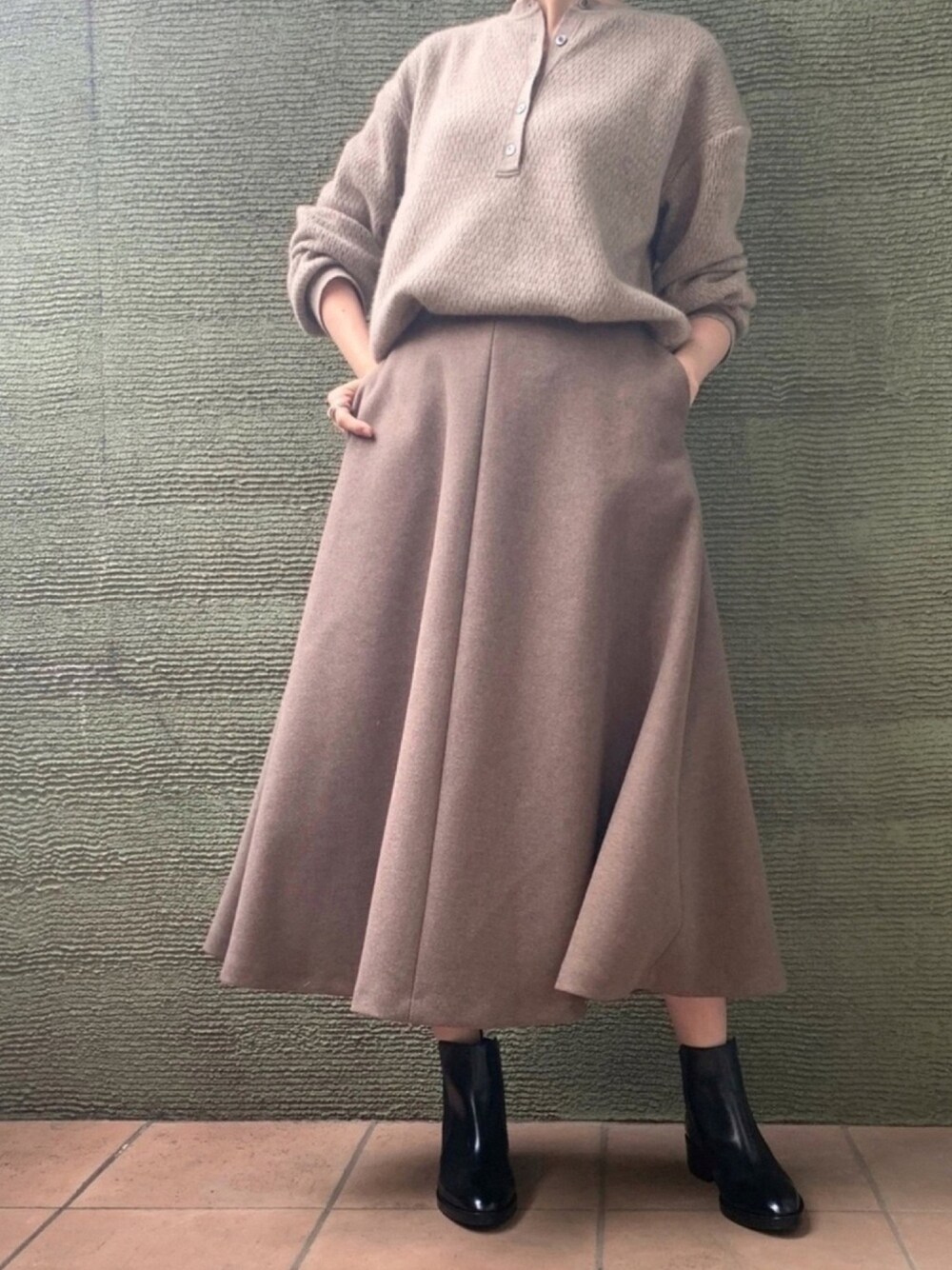 wuqa(Munich)のスカート「ウォームダブルジャージー フレアスカート」を使ったコーディネート