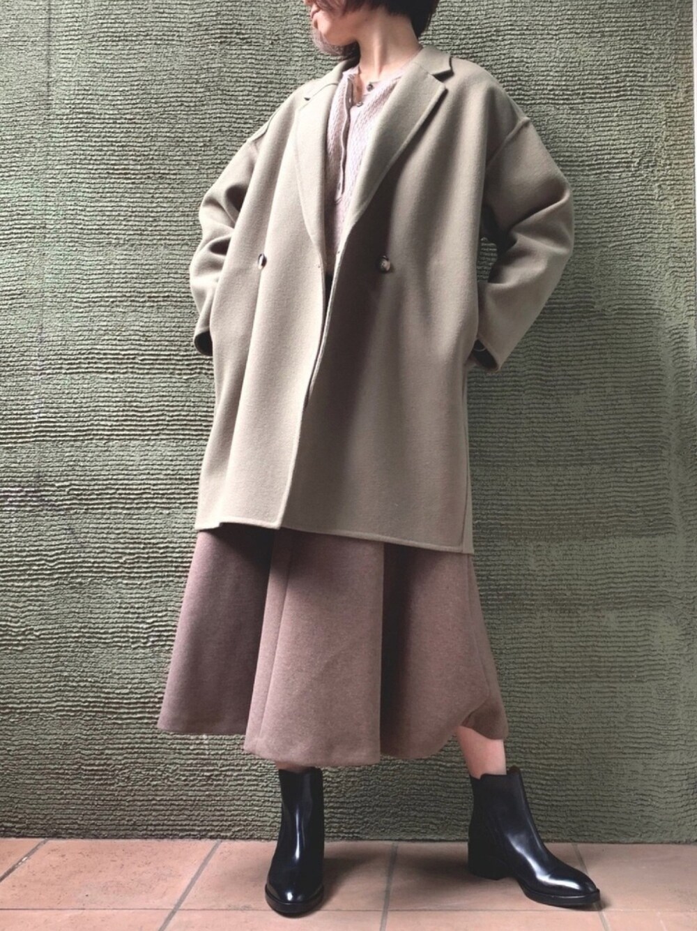wuqaのその他アウター「スーパー100ダブルクロスリバーテーラリングショートコート」を使ったコーディネート