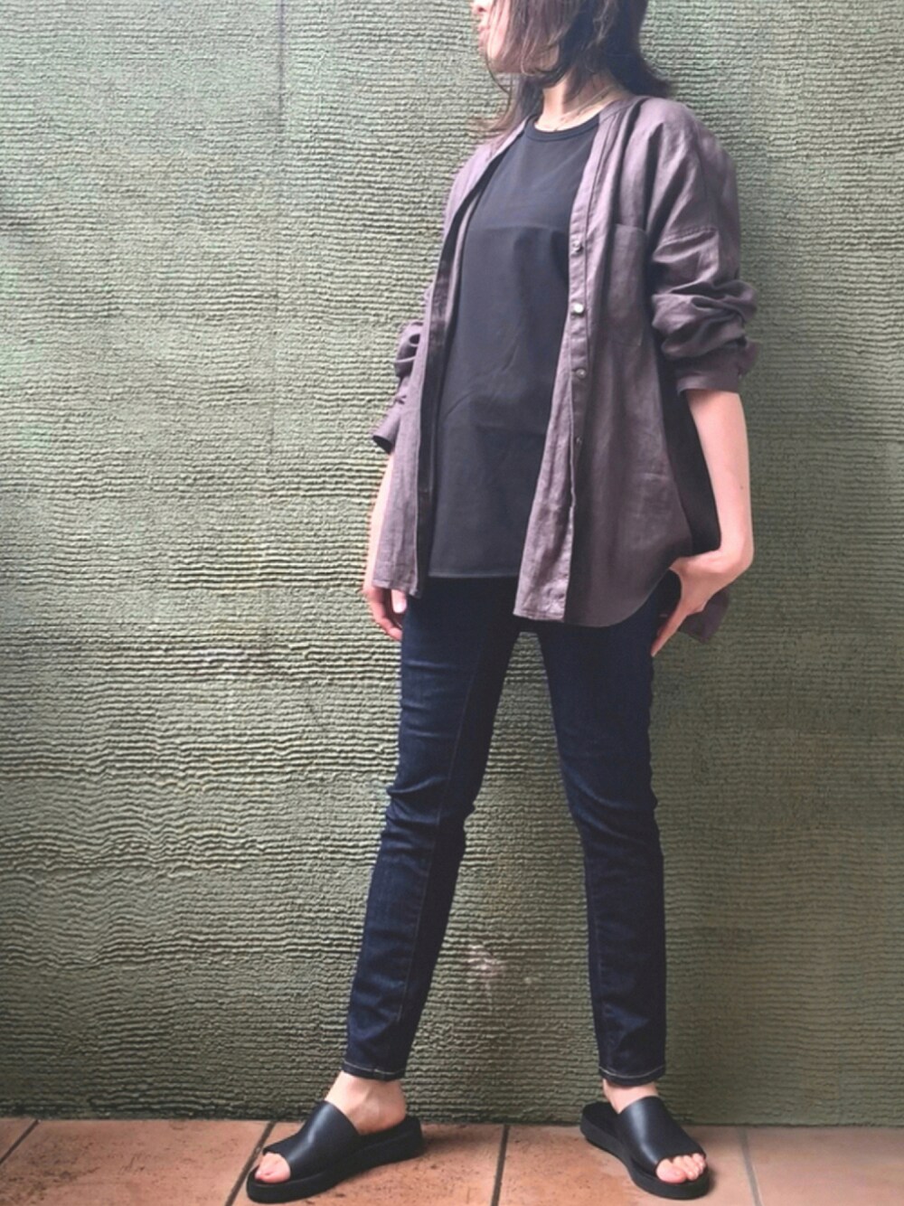 このリネンシャツ、しっかり厚みがあって、色がさりげなく秋っぽくてとっても可愛いです😊 さらっと羽織って決まるので、冷房や紫外線対策にもとかなりおすすめです💕
