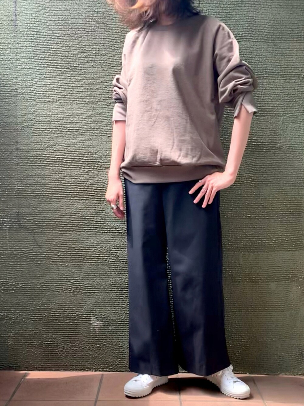 程よい厚みで普段使いしやすいスウェット🤞 さりげない袖のスリット使いが可愛いです♡ たくし上げても決まりますよ😊
