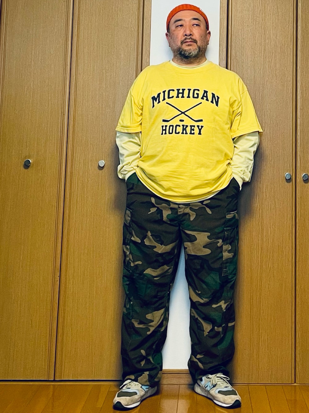 長袖のTシャツの上に半袖を着るの、ダサいのか心配。昔はよく見かけたんだけど、近頃はあまりいない気がする……。 「昔」っていつ? 昭和末期(私・大学生)だったような気がするし、90年代半ばのような気もするし(私・子供いた)。 古い気がする。でも、一周回っていい感じ? なのかもしれない。ぐずぐず考えながら、似た色を合わせる弱気。 サマーニットの帽子を被って、迷彩パンツ履いたら、とっても昔の人な感じがする。でも、なんか落ち着く格好。 入間のジョンソンズタウンの古着屋で、1500円で売ってたプリントTシャツの中にGUで590円だったロンT。安! 迷彩のカーゴパンツはね、米軍のエアクルーパンツ。ポケットが、腰に2つ、太ももに2つ、膝下に2つ、ケツに2つの合計8個のポケット祭り。何入れようかな? しかも、座った姿勢で、すべてのポケットの入り口が上を向くようにできてる。で、伝わるかな……? 立った姿勢だと、太もものポケットが上じゃなくて前から手を入れる。 すべてのポケットがマジックテープつきで、落とし物の心配を軽減。でも、ポケットに手を入れづらい。ポケットに手を入れるとき、マジックテープのザラザラがちょっと痛い。 手が痒くなったときに、人知れず掻ける。 あと、パイロット用だから難燃素材。大学生の頃、友達がMA-1を「パイロット用だから燃えないんやで」と言って、ライターで炙って焦がして「米軍のいうこともあてにならんな」と動揺を隠してたのを思い出した。 ボン・イヴェールのアルバム『Bon Iver』の発売10周年記念編集盤が発売されてた。これと、この前のアルバム『For Emma,Forever ago』が好きで、どちらも何度も聴いた。 Apple Musicで聴いたら、記念盤にはいくつかのアウトテイクが追加されていた。『I can’t make you love me』(ボニー・レイットのヒット曲)のカバーは、たぶん未発表。 10周年。この10年の記憶が、いろいろ混ざり合って物事の前後がわからなくなってる。特にこの3年くらいは。まだ2019年のような錯覚。 気をつけてないと、人に「東京オリンピックには反対だよ」なんて言いそうになる。いや、まだ反対してる。原発にも戦争にも入管行政にも家制度にも。 自分の思考の速度をはるかに超えたスピードで、時間が流れる。その間に、娘たちは立派な大人になっていて、僕は記憶の中の幼い少女たちと散歩に出かける。 今日は暑いから、帰りにアイスクリーム買おうか? 『Bon Iver』コメント欄のYouTubeリンク貼りました。