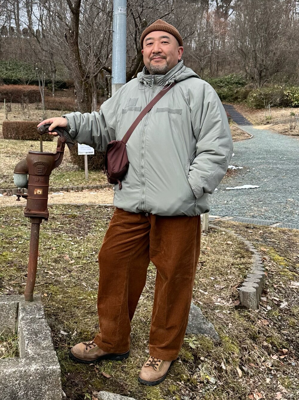 盛岡にて。 思ったほどは寒くないけど、雪がちらついてきた。 フードを被ったり脱いだり。 周りの景色と同化した色合いで。