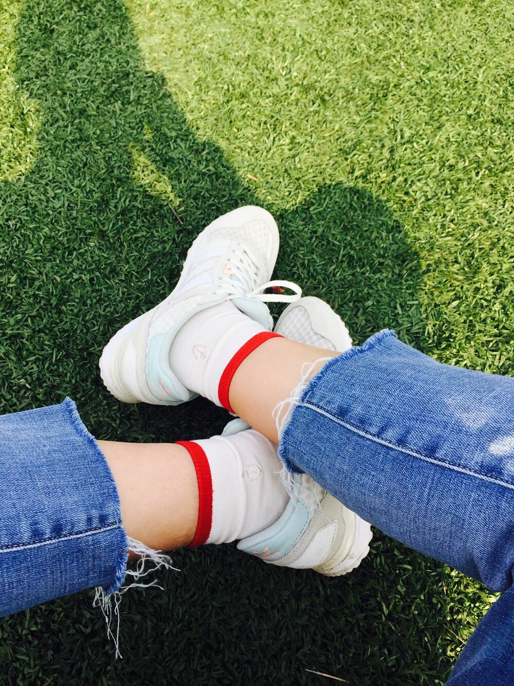 白加蓝的搭配太简单,所以骚气的加了一双带红边的袜子😂😂