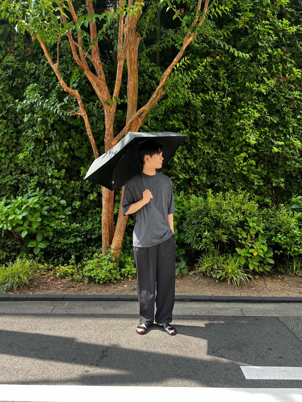 機能性満載 "UR TECHコーデ" <Tシャツ&パンツ> ナイロンとは思えないマットな質感とシルキーな肌触りが上品です!(機能性 : 撥水性,UVカット,360°ストレッチ) サイズもオーバーサイズ寄りでトレンドを押さえつつ、ストレスフリーなアイテムです◎ <傘> 仕様は、晴雨兼用です。 取り回ししやすいサイズ感の傘で、これからの梅雨時期に大活躍間違い無しです!