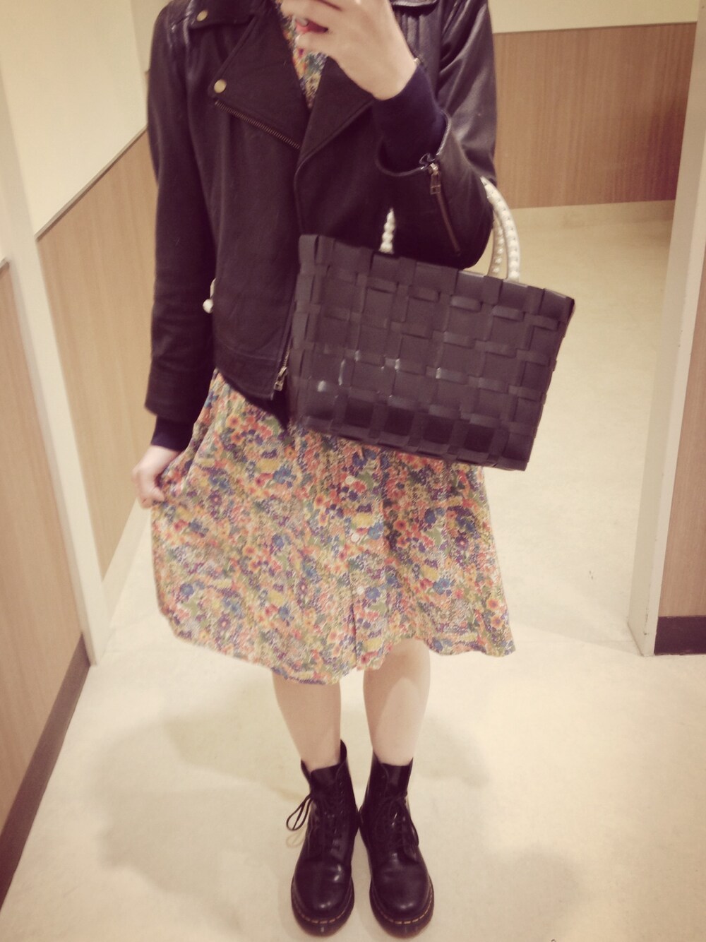 unikoのトートバッグ「パールハンドル テープバスケット ヨコナガM◆」を使ったコーディネート