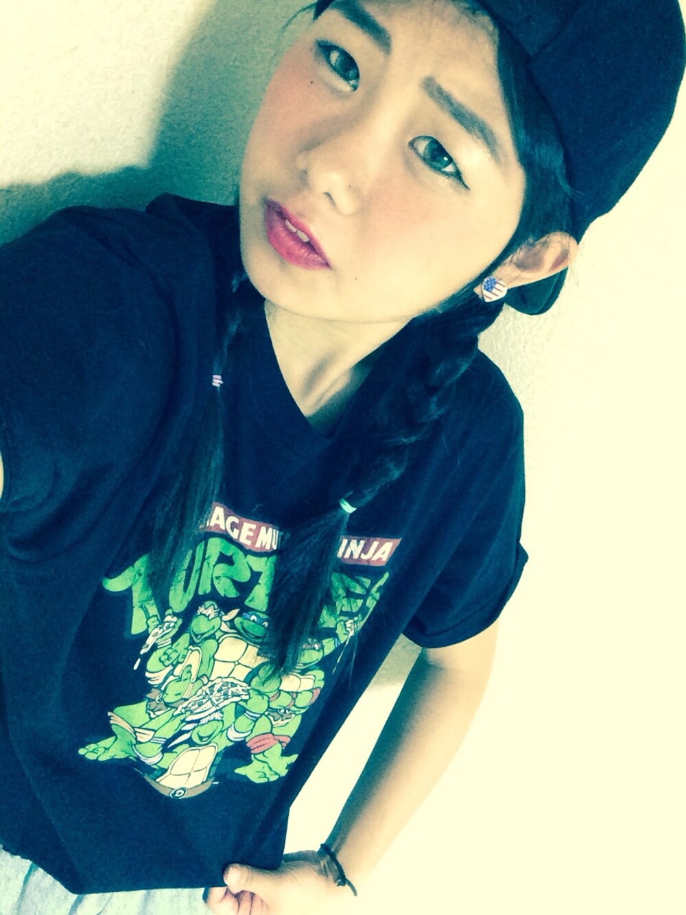 TURTLESのTシャツ一目惚れ♡ しかも800円やったし即購入♡ 幸せ〜 でかける用事なんもないけど着てみた〜 下はデニムのスカート〜