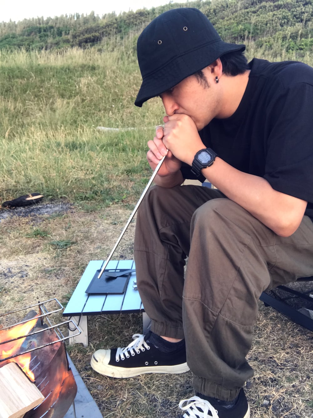 キャンプスタイル🏕 日中はもう暑いぐらいだけど、夜はまだまだ肌寒いから焚き火がいい具合に暖かい☺️🪵🔥 梅雨に入る前にキャンプやりまくるぞ✊(笑) チャムスの鉄板可愛い💕