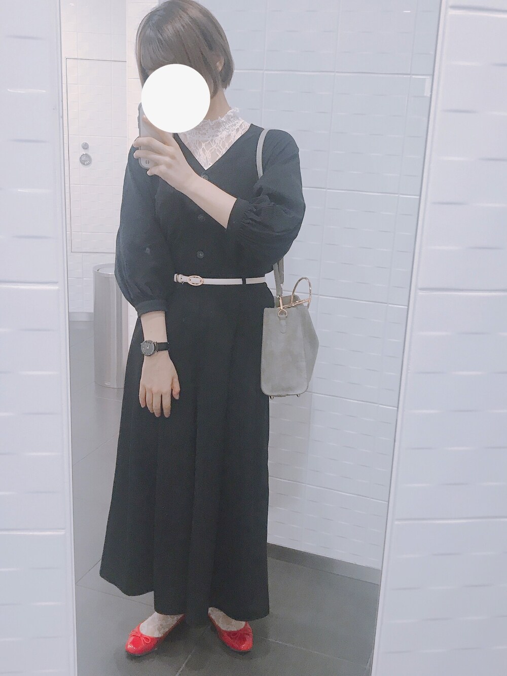 ある日のお洋服 🌸 赤色の差し色がポイントです☺️