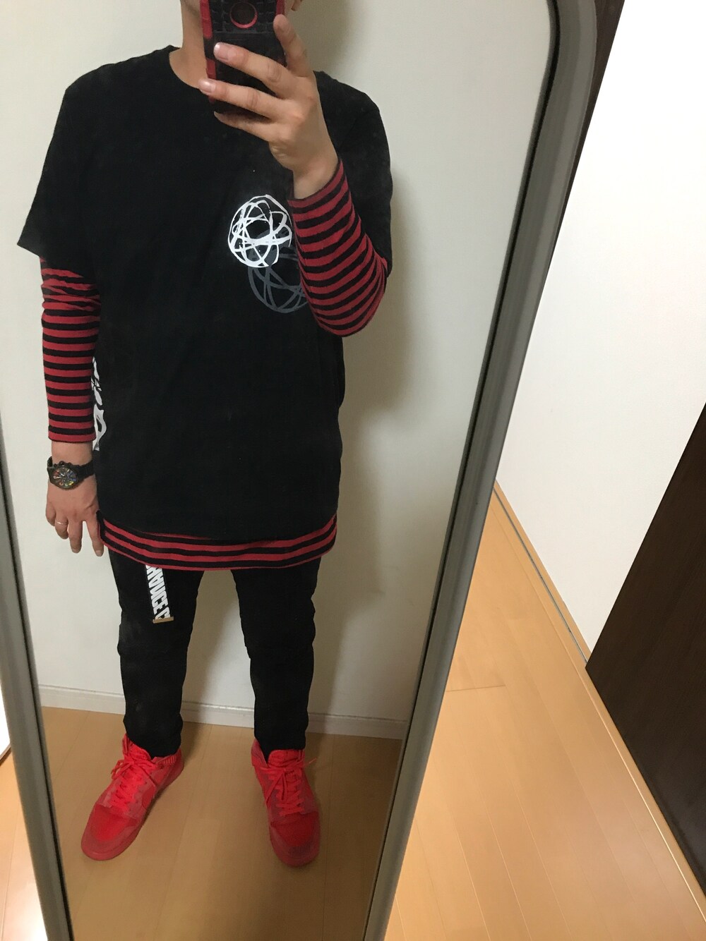 皆さん、こんばんは。 夜にアップは珍しいかもしれません。 今年、UNIQLOにて購入したfuturaTにWEGOの赤黒ボーダーロンT合わせてみました。 案外このロンT何にでも合わせやすいかも(о´∀`о)