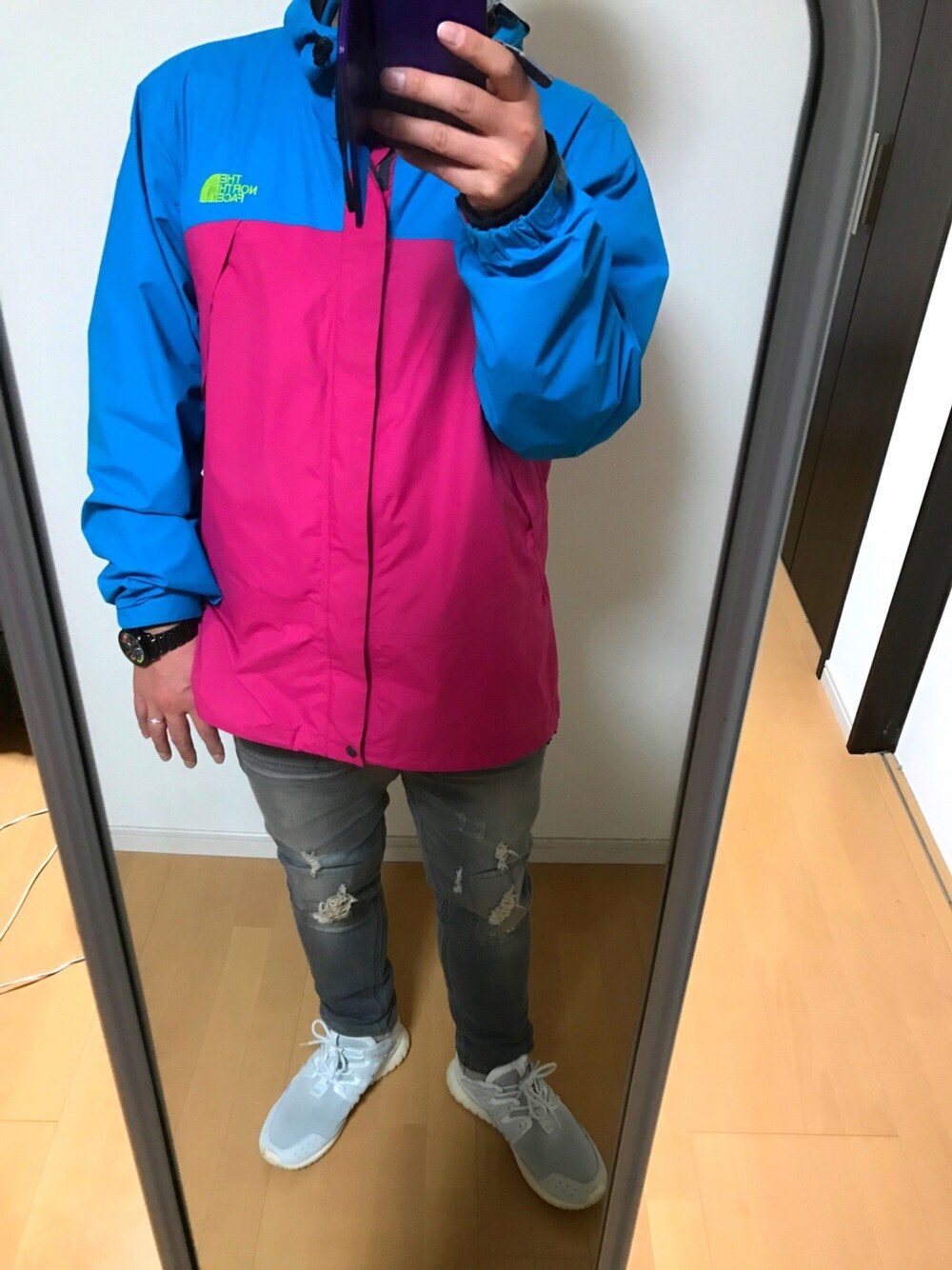xBのナイロンジャケット「the north face ドットショット 水色✖️ピンク」を使ったコーディネート