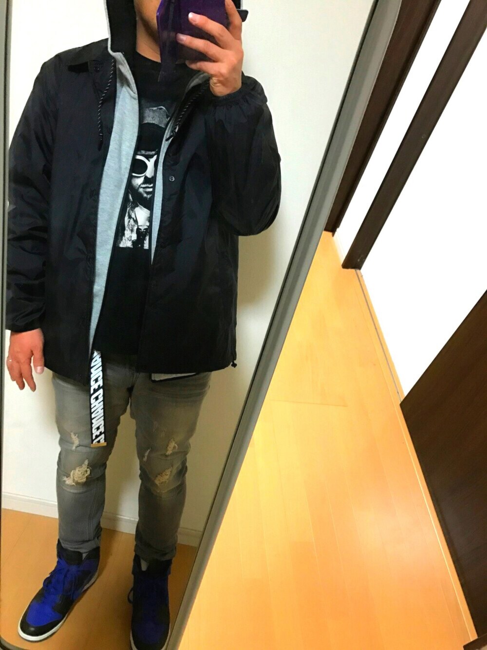 皆さん、こんばんわ。 今日はまたまたコーチジャケット着てますw このインナーに着てるジップパーカーはコーチジャケットに合わしたいが為に買いました(*^ω^*) やっぱ霜降りグレーパーカーにコーチジャケット黒は鉄板やと思います♪ あとは久しぶりにロイヤルブルーのダンクも履きたかったのもあって、全体的に色味は抑え目に、ダンクを目立たたせたつもりです。