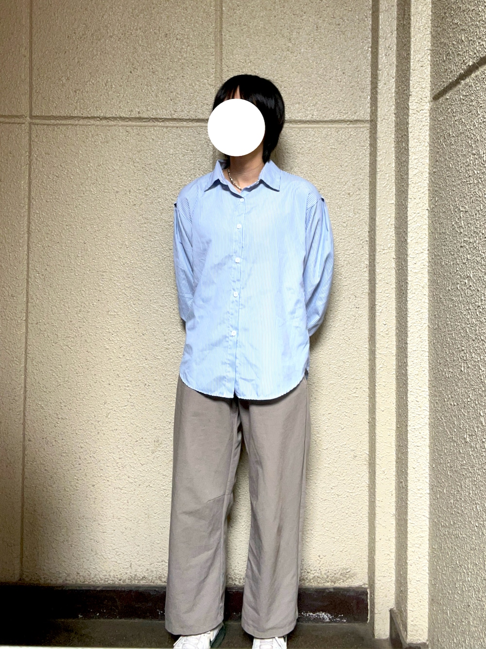 Kamのシャツ/ブラウス「2WAY ボリュームスリーブ ルーズストライプシャツトップス」を使ったコーディネート