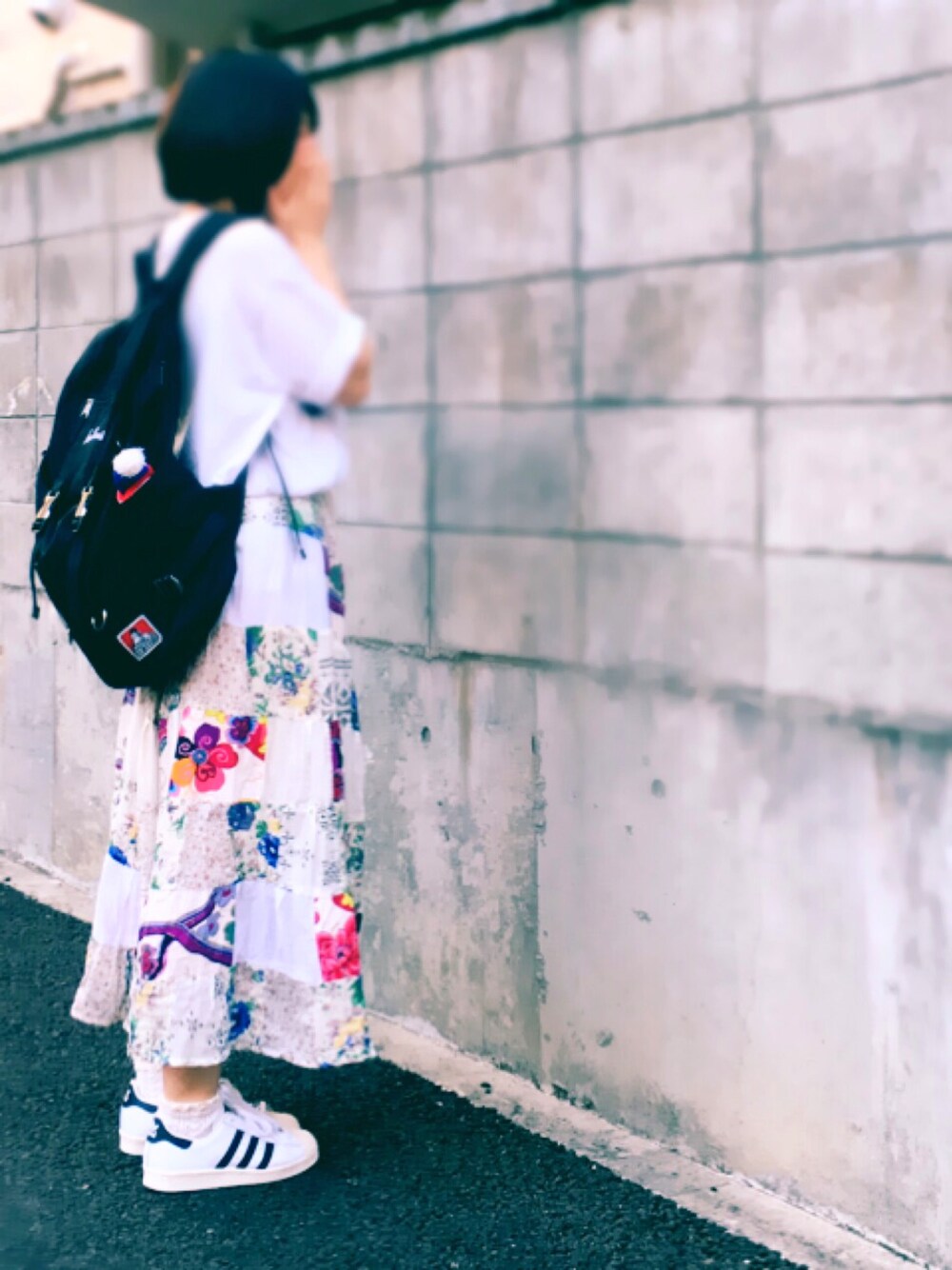 今日は地元で大っきなお祭りがありました🎆 スカートはどこかの古着です、、😇 リュックのポケット、帽子しか見えてないけど ゆかいなもぐらのマスコットが入ってます✌🏻️