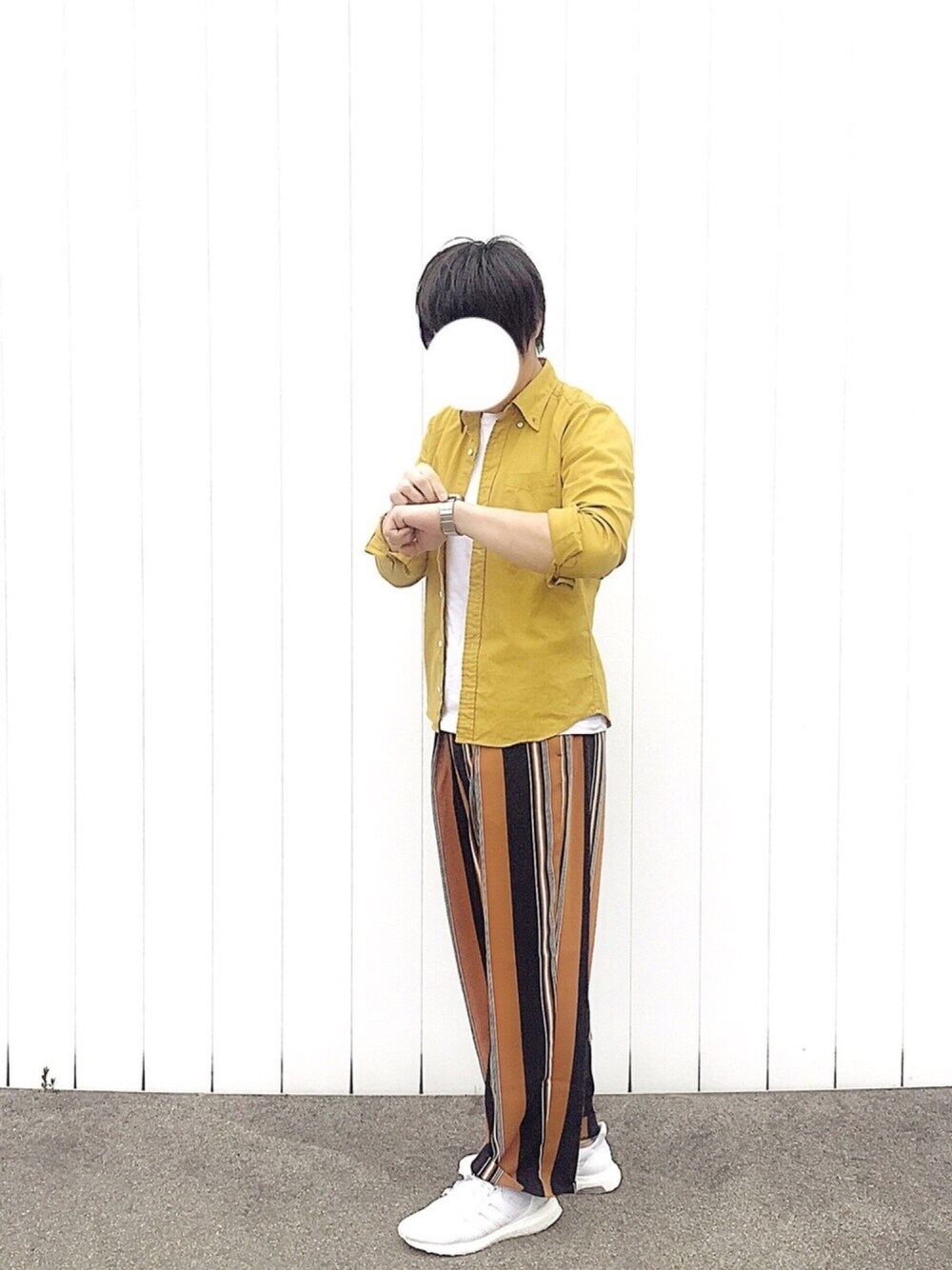おはこんばんにちわ フリークスストアのマスタード色のシャツにHAREのストライプワイドパンツ💫 このワイドパンツは一枚で凄く目立つから夏のシンプルコーデのアクセントにちょうど良いね🙆💯💫 それでは!