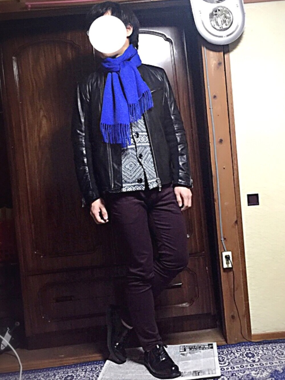 おはこんばんにちは!🙇 今日はレザーコーデ😚🎶 ブルーのマフラー買っちゃいました✨✨ モノトーンコーデの差し色にブルーは相性いいと知った時からやりたかったコーデの一つが出来て満足です🤗 いつもいいねsaveありがとうございます😍 それではまた明日‼️ あばぁ〜👋