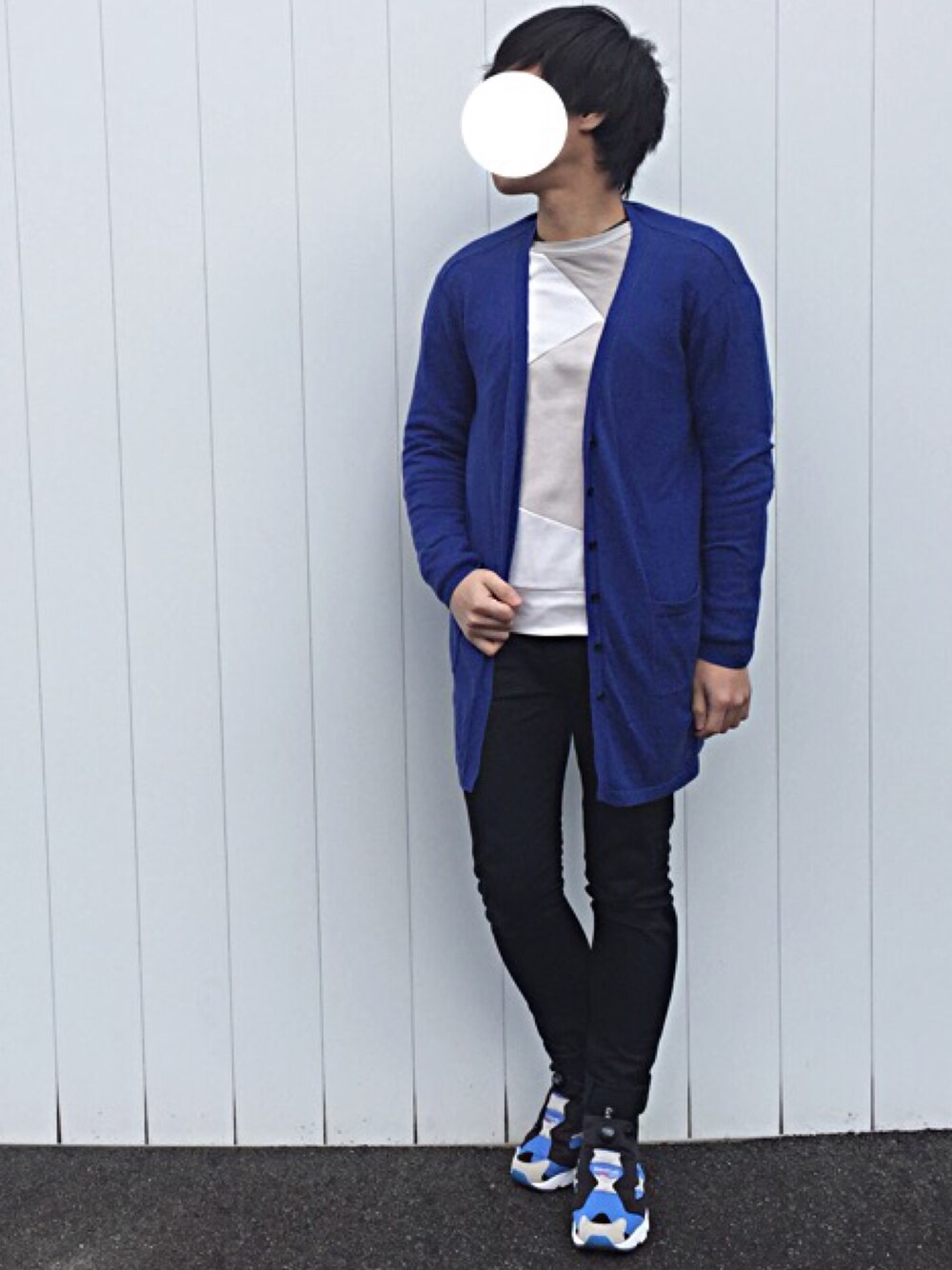 おはこんばんにちわ! 今日はブルー×ブラック×ホワイト×グレーで足元まで統一感を出してみたよぉ〜😊🙌 派手なスニーカーもトップスやパンツも同じ色使えば違和感なく取り入れられるね💫💫 それでは!✋