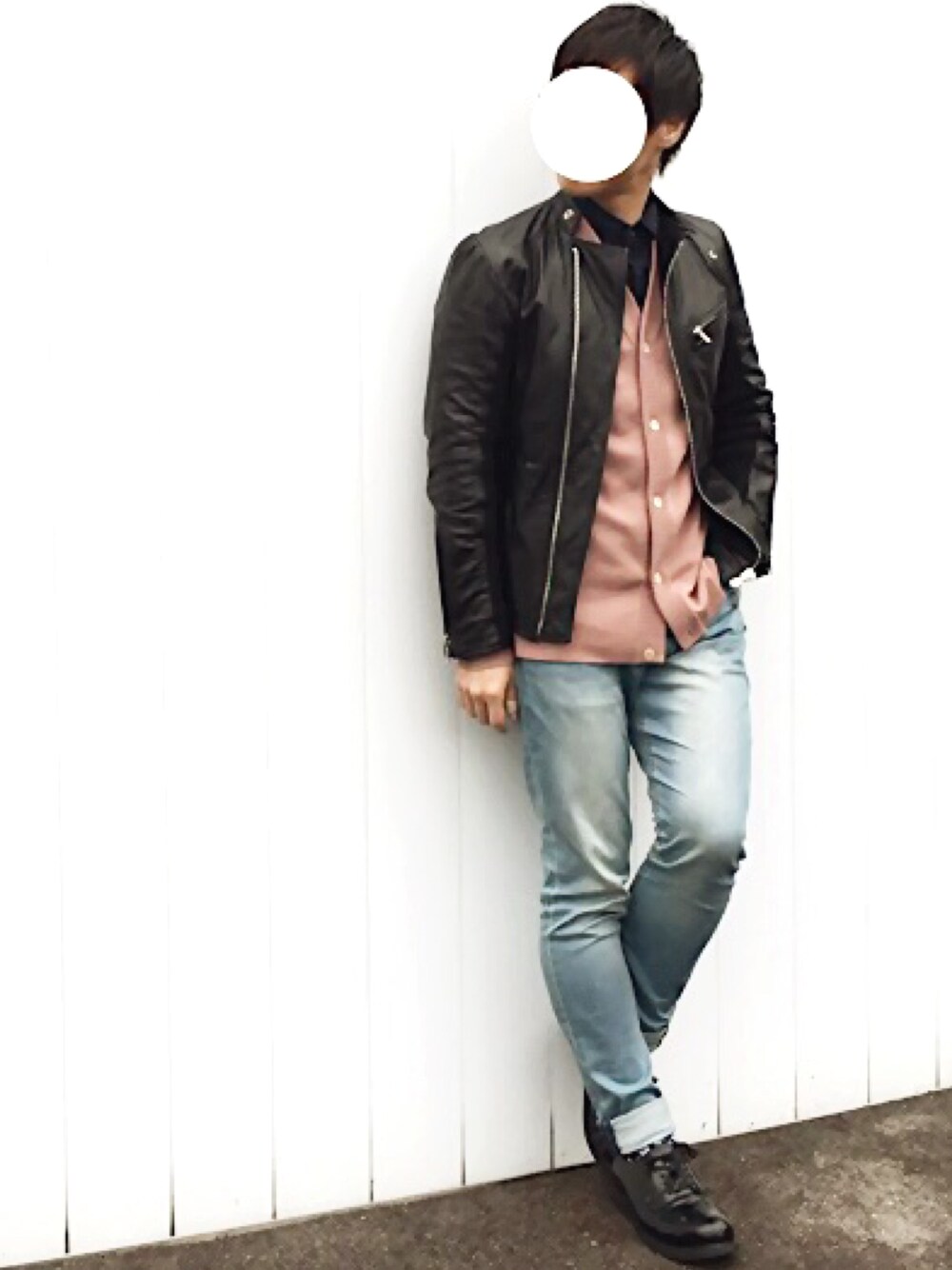 おはこんばんにちわ 今日は友達と花見行ってきました!🌸😍🌸 桜はすごく綺麗だったけど風が強くて寒かった🍃😖💦 コーデの方も春らしく明るめ!!! 桜に合わせてピンクのカーディガン🙆♂️💯 レザーの黒とすごくマッチしててイイカンジ!(☝ )☝ それでは((ヾ(・д・。)マタネー♪