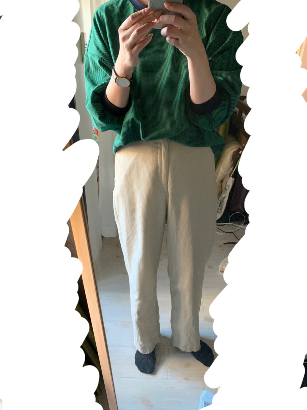 細いボーダーの服欲しかったから嬉しい! ズボンはユニクロのリネンのやつ!涼しい。