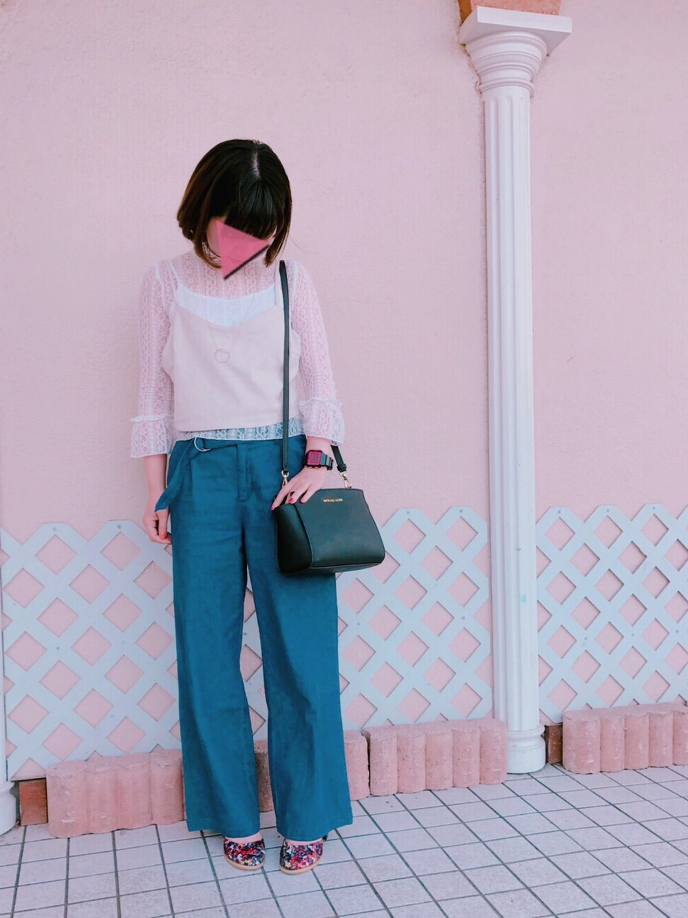 初投稿!! よく晴れた休日だったので、 コートは羽織らず 春の新作を着ました 全体的にシンプルなので 足元にカラーを☆