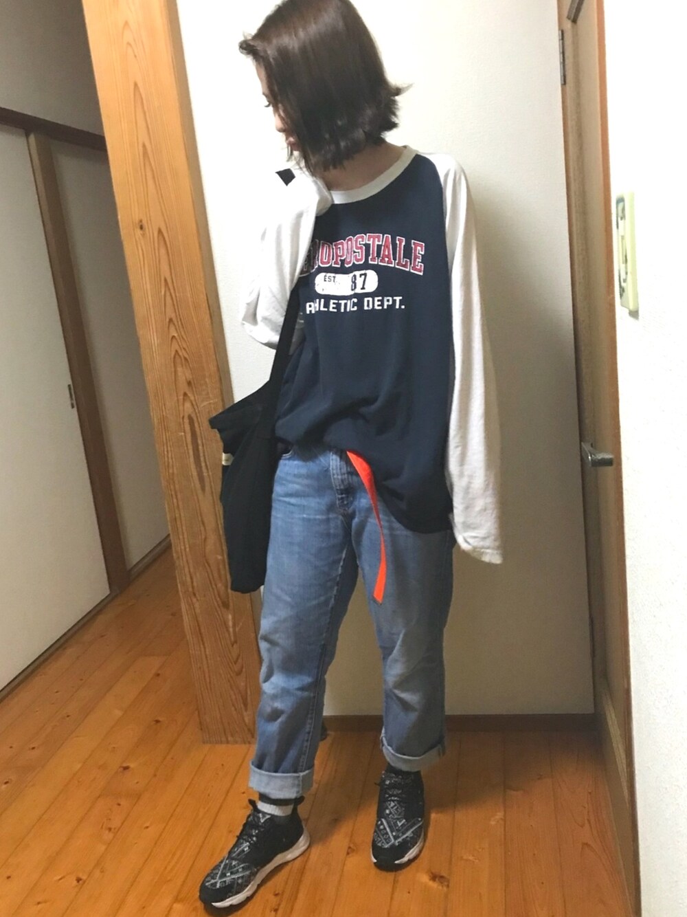 すっごく足が短くみえるけど笑 今日は久々の休日〜 ラフな古着コーデ💜😉 チラッとみえる 派手色のガチャベルトが かわいいので 最近ちょくちょく使ってます😍💕 髪型は掻き上げ外ハネヘア😌