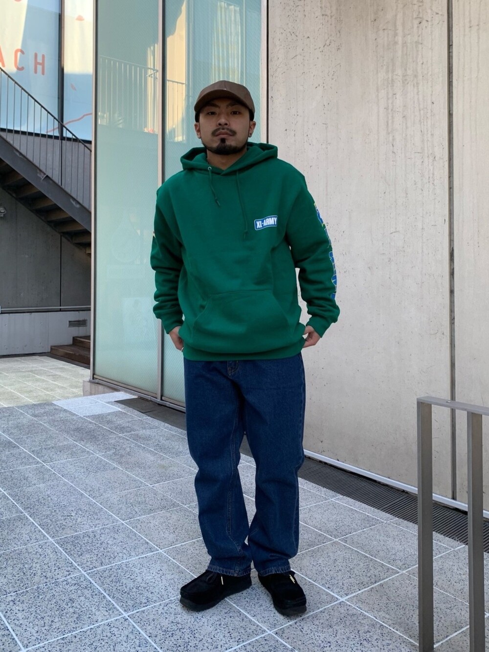 石井 智大のパーカー「XL-ARMY HOODED SWEAT」を使ったコーディネート
