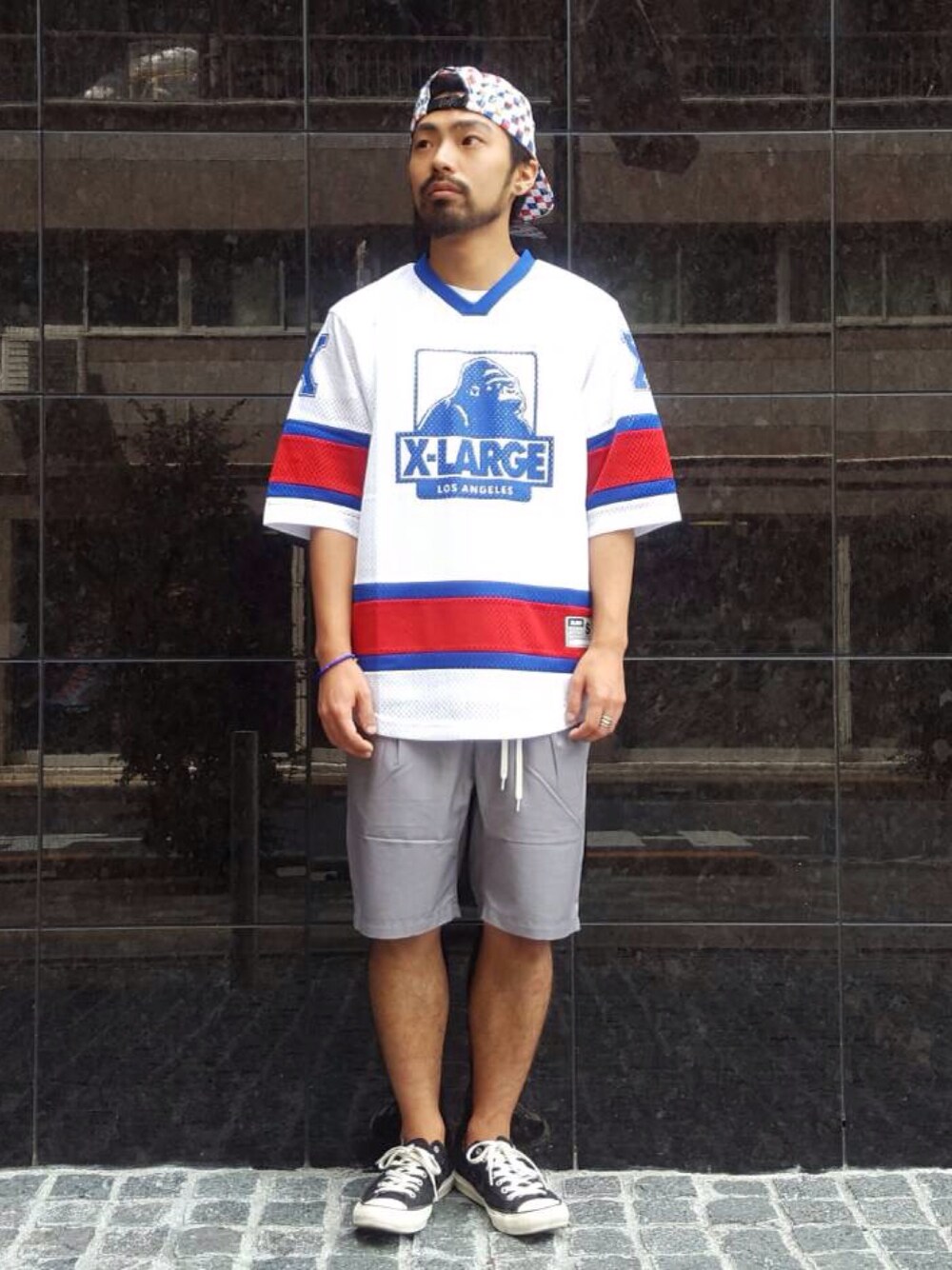 OGゴリラグラフィックのホッケージャージをチョイスしてコーディネート。バックには91のナンバーが入り、Tシャツやタンクトップ、秋口にはパーカーとのレイヤードスタイルが楽しめます。
