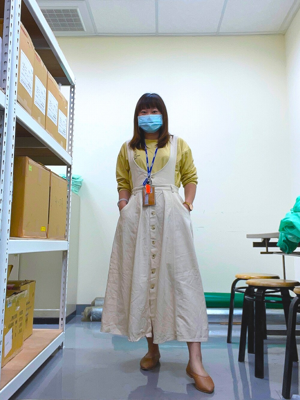 很努力的在搭配米色系吊帶裙🤣