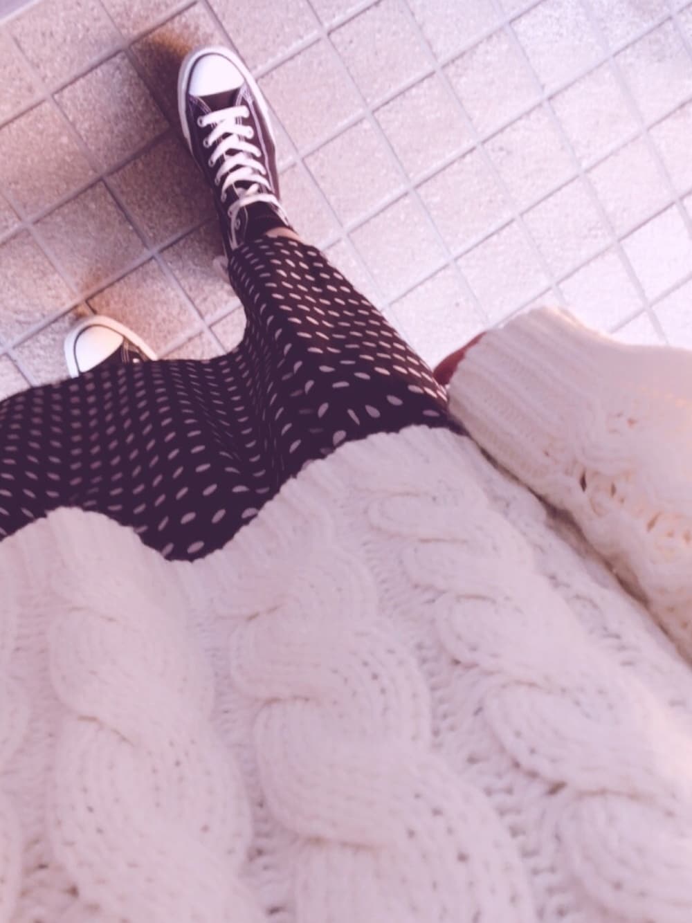今日はお休みだけど早起きして行動開始! ドットのロングワンピは古着屋さんで安くなってたお気に入り💕 ニットは前回の投稿と同じものです。