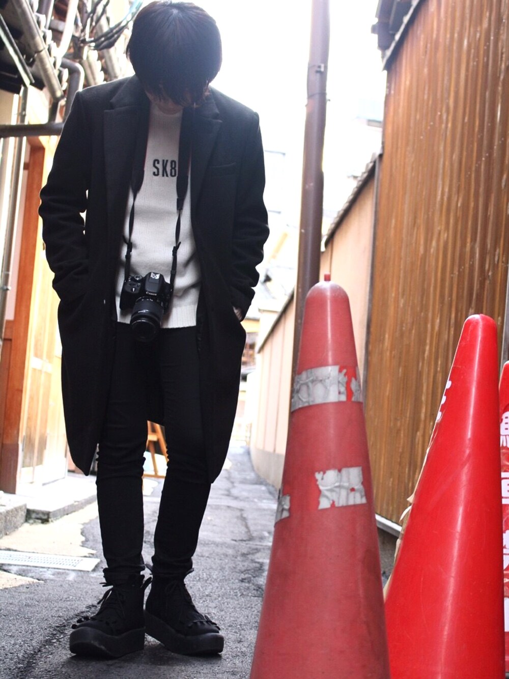 @京都 全身黒にワンポイントの白コーデ