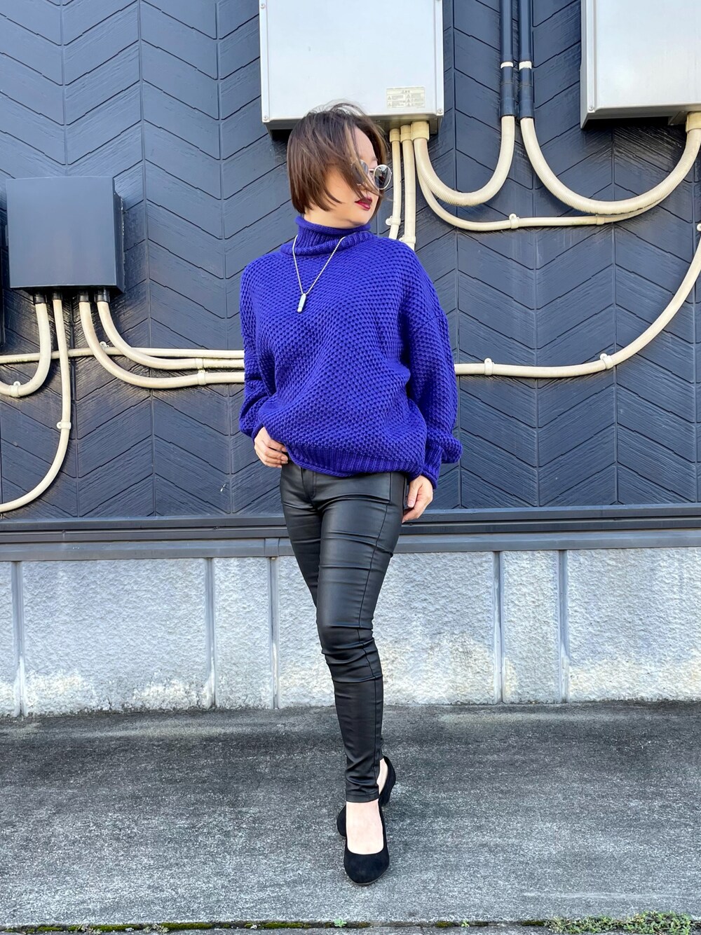 ご覧頂きありがとうございます⸜(*ˊᵕˋ*)⸝💕✨ ひろっちゃ🍀 emiさん🍀 たっくんさん🍀 ぱぱさん🍀 素敵なタイトルのフォルダーに 入れて下さって本当に ありがとうございます(❁ᴗ͈ˬᴗ͈)”peko 鮮やかなブルーのニットに ちょっとハードなフェイクレザーの スキニーパンツを合わせたコーデ 少々カッコ付けすぎwww 今年の冬は寒くなるのかな… と思った朝でした! 𝐇𝐚𝐯𝐞 𝐚 𝐧𝐢𝐜𝐞 𝐝𝐚𝐲🍀